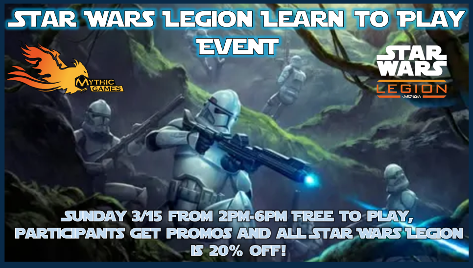 Free to play, participants get promos and all Star Wars Legion is 20% off!