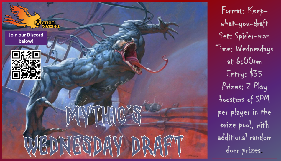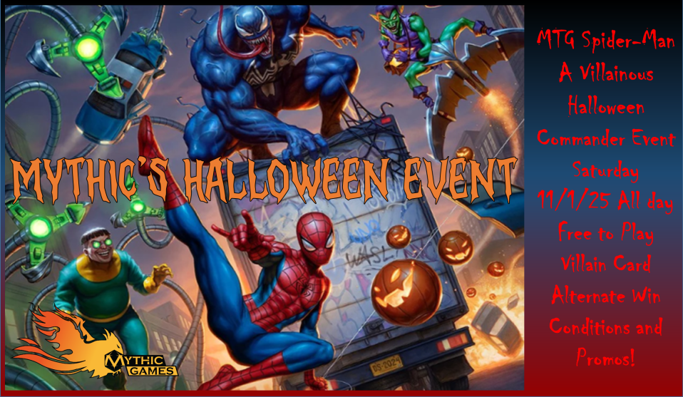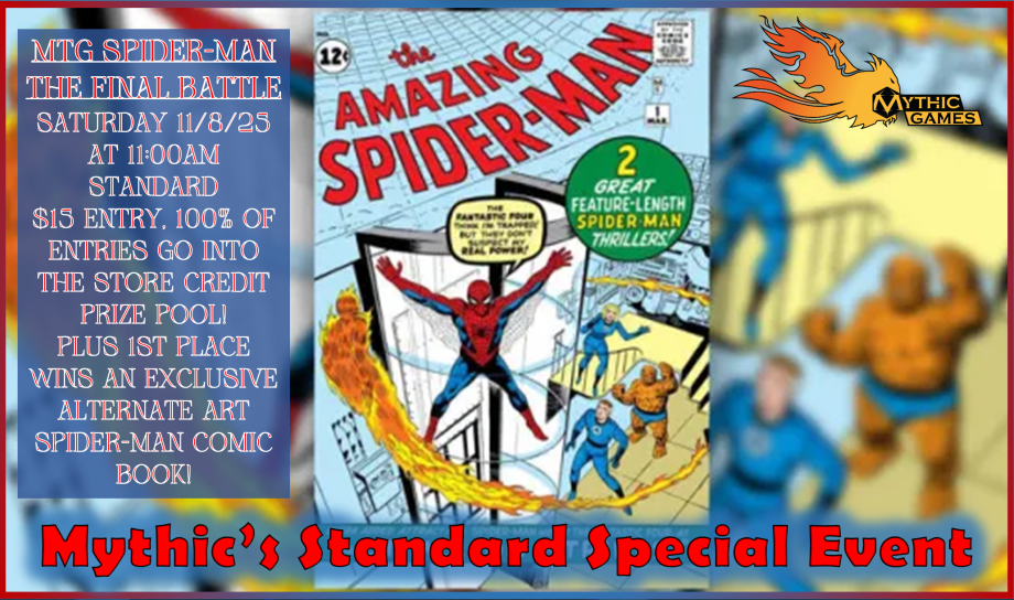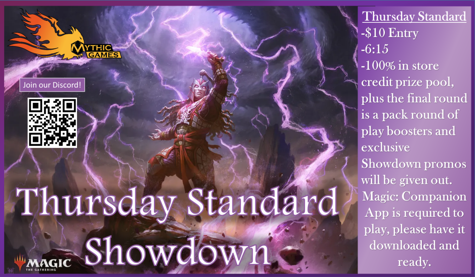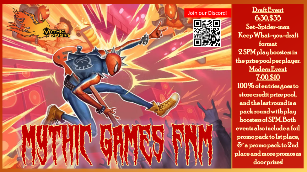 Thursday Pauper at Mythic Games $7 entry, starts at 6:30pm We put 100% of entries into the store credit prize pool!
