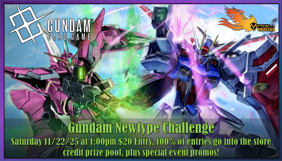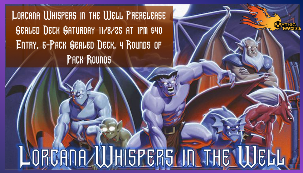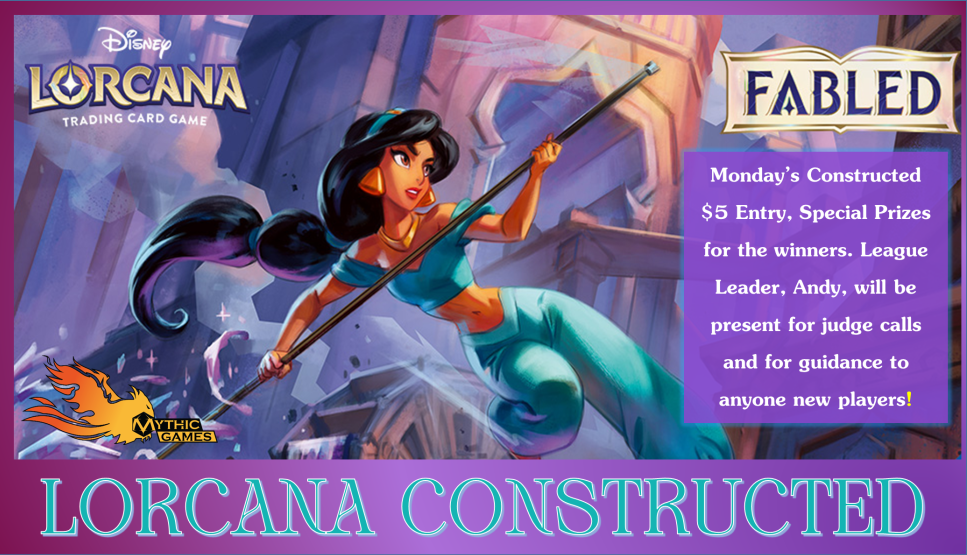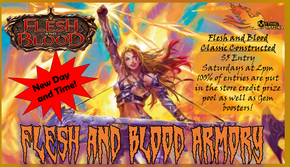 Mondays at 6:30pm, $5 entry, 100% of entries go into the store credit prize pool, plus promo pack prizes!