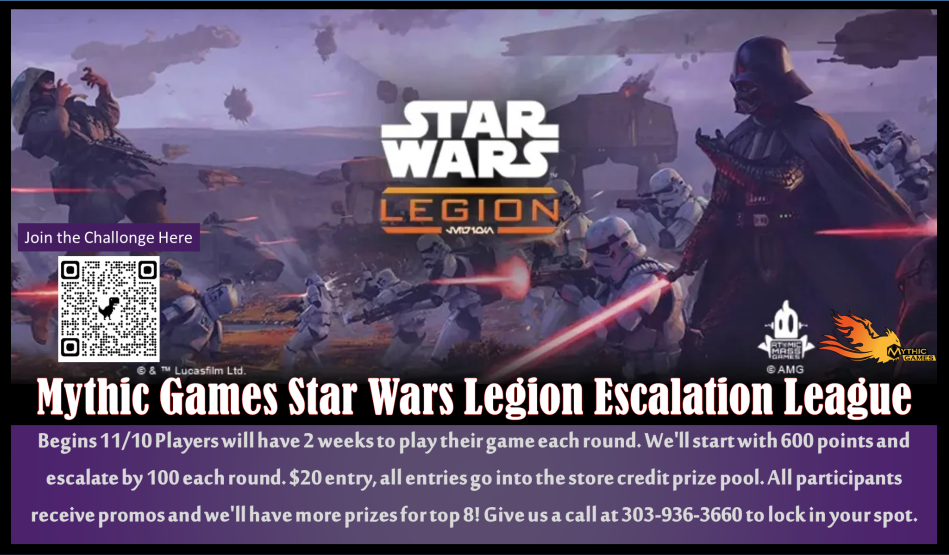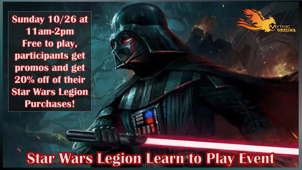 At Mythic Games we host Star Wars Legion & Shatterpoint Sundays starting at 9am!