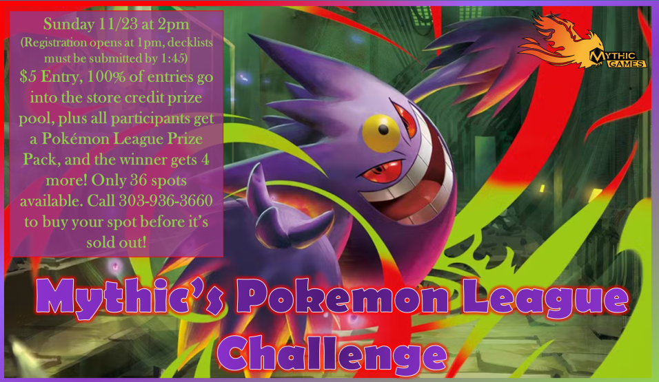 At Mythic Games we’re hosting our next Pokémon League Challenge!