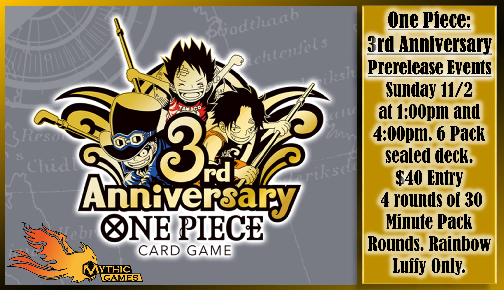At Mythic Games we’re hosting One Piece TCG every Thursday at 6:45pm Starting on February 1st