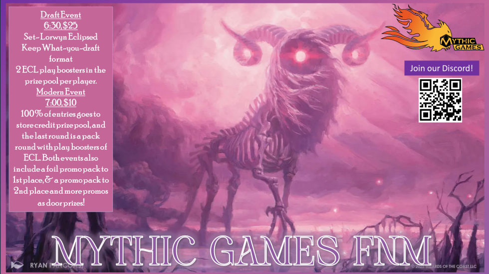 At Mythic Games we’re hosting FNM Every Friday!