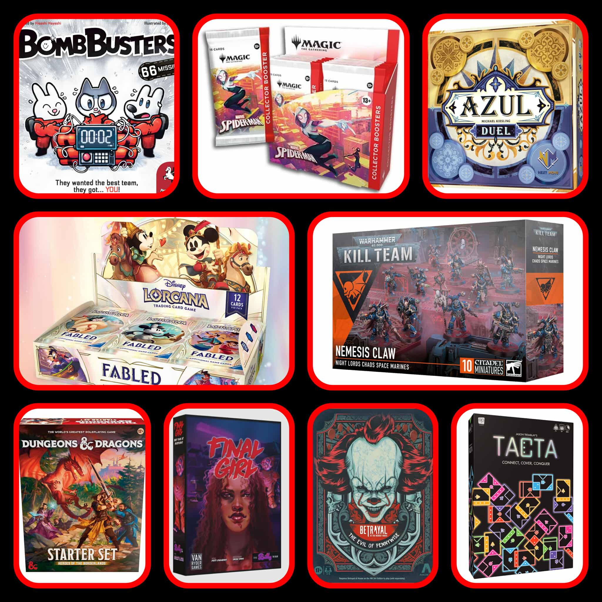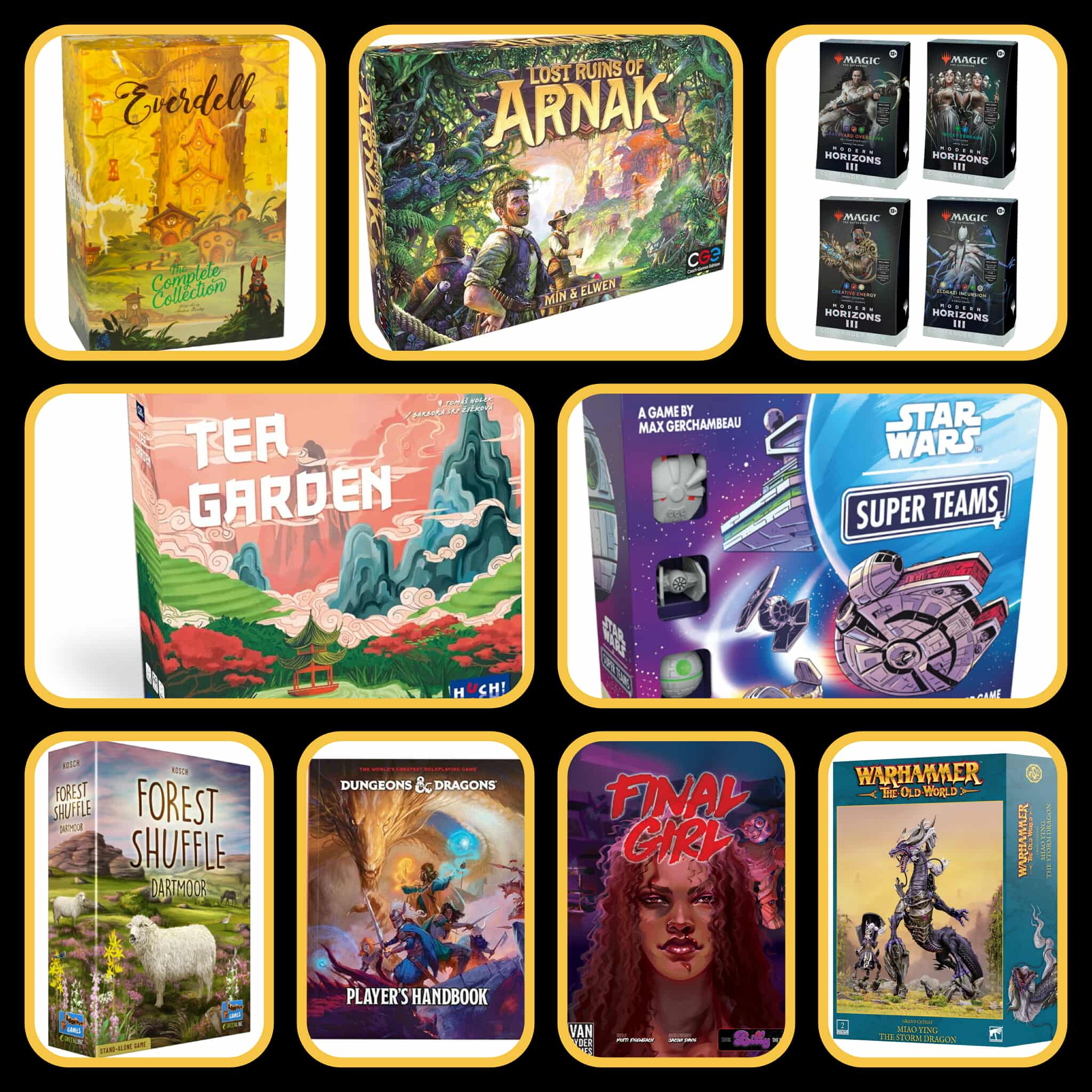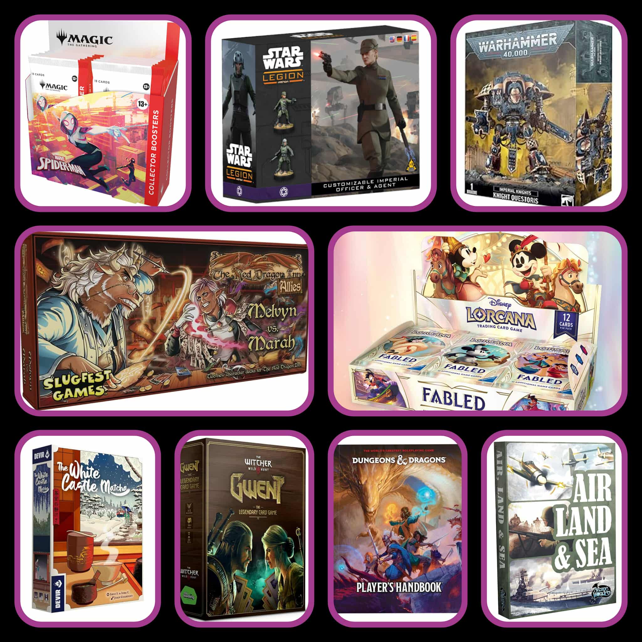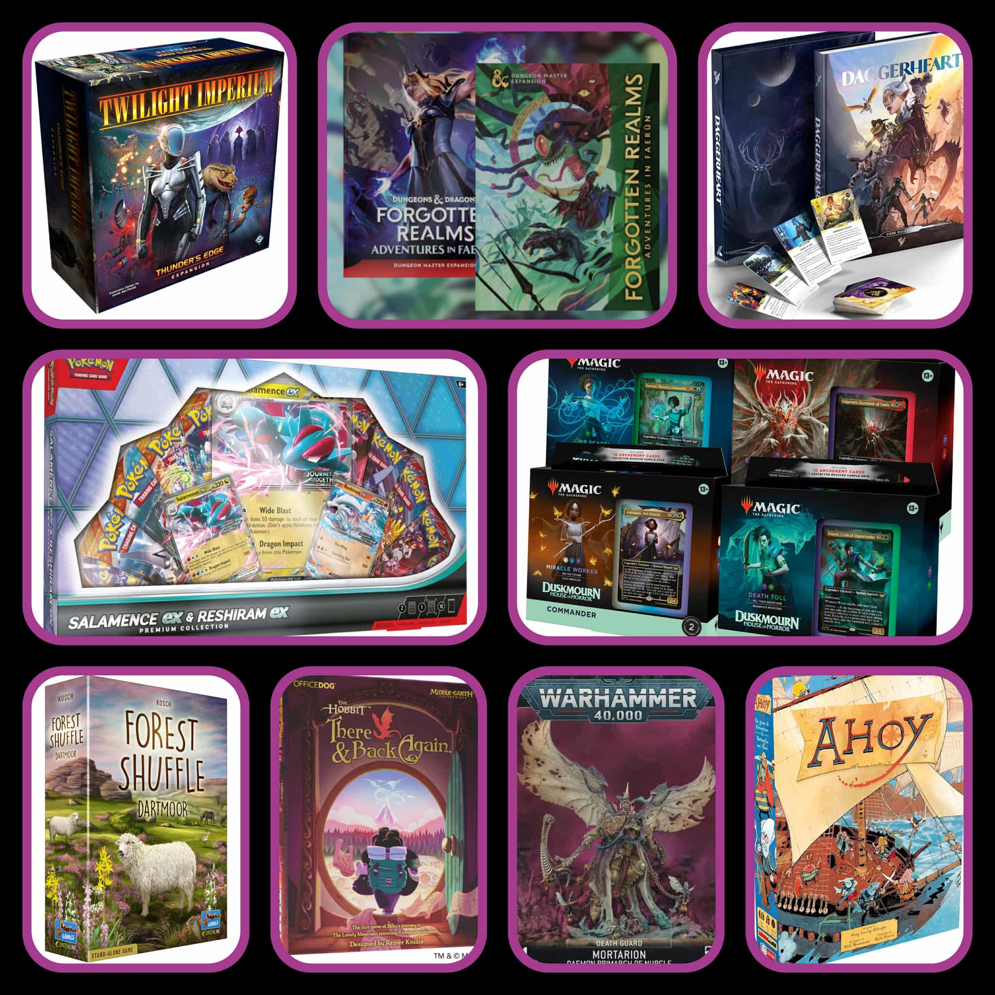 MTG: Aetherdrift Finishline Bundle, Aetherdrift Bundles, Aetherdrift Commander Decks, Outlaws of Thunder Junction Play Boosters, Modern Horizons 3 Play Boosters, Modern Horizons 3 Commander Decks, LOTR Commander Decks, LOTR Scene Boxes, Starter Commander Decks, Tinybones Gamer Pouch, Mochi Kami Plush, & Fallout Commander Decks